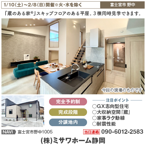 『蔵のある家®』スキップフロアのある平屋。3棟同時見学できます。