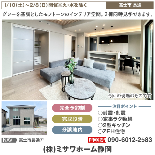 グレーを基調としたモノトーンのインテリア空間。2棟同時見学できます。